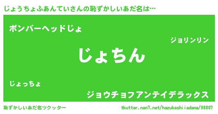 | ヘコむあだ名 | 『じょうちょふあんてい(笑)』『じょぷりん』 |