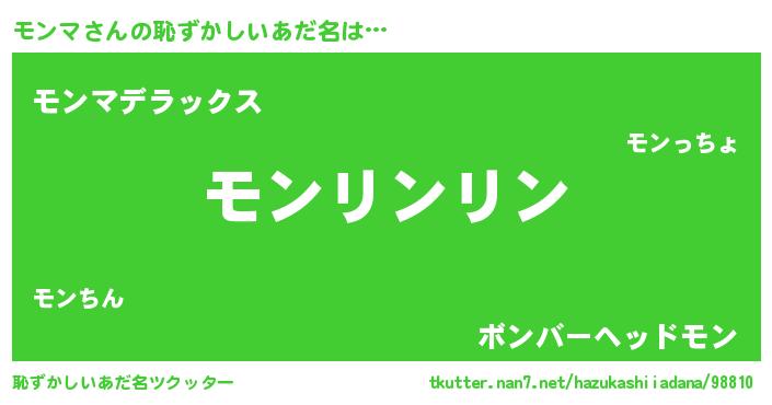| ヒーロー風カッコイイあだ名 | 『銀牙騎士モン』『究極戦士モンマ』 |