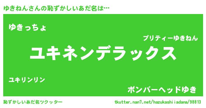 | ヒーロー風カッコイイあだ名 | 『サイバー戦士ユキネン』『仮面ユキダー』 |