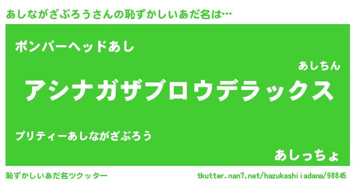 | 意味不明あだ名 | 『自称あしながざぶろう』 |