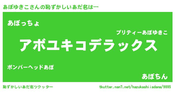 | ヒーロー風カッコイイあだ名 | 『超時空戦士アボユキコ』『仮面アボダー』 |