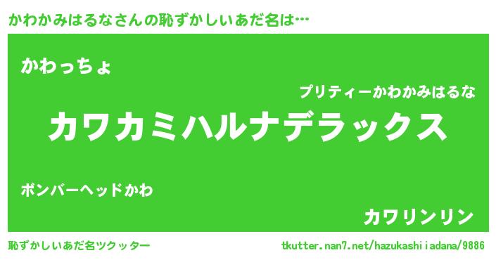 | 肩書あだ名 | 『かわかみはるな少将』 |