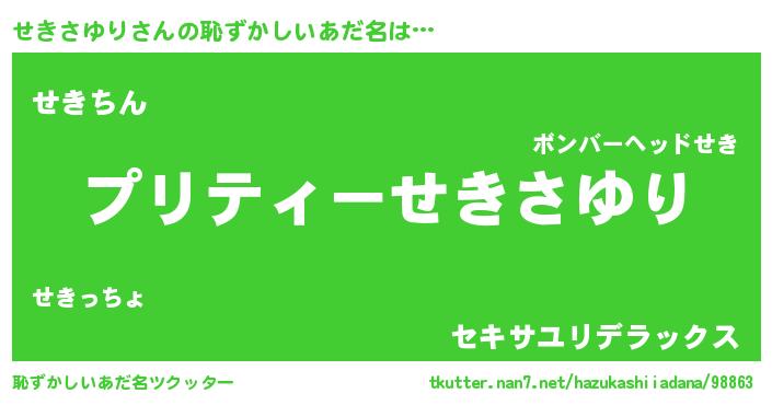| ヒーロー風カッコイイあだ名 | 『スーパーセキサユリ』『ネオセキサユリ』 |