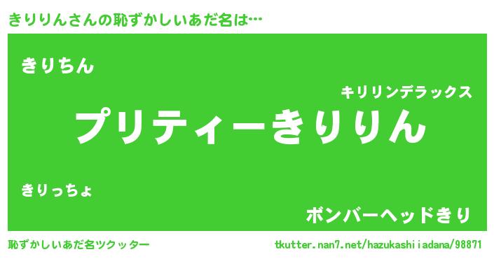 | ヒーロー風カッコイイあだ名 | 『スーパーキリリン』『ネオキリリン』 |