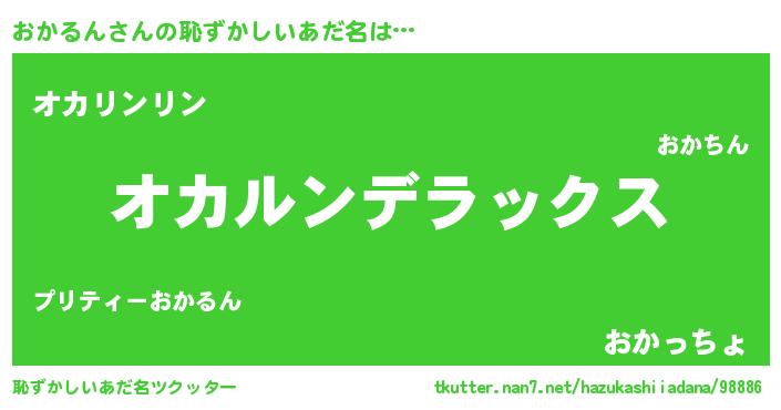 | 意味不明あだ名 | 『自称おかるん』『ニラ科おかるん属』 |