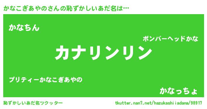 | 意味不明あだ名 | 『とにかく怪しいかなこぎあやの』 |