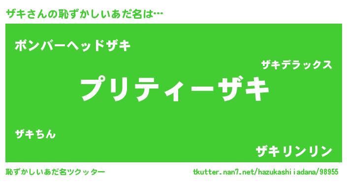| 女子向けラノベタイトル風あだ名 | 『ザキ姫と円卓の騎士』『死神ザキの再婚』 |