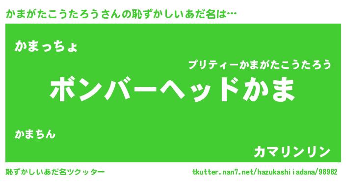 | ヒーロー風カッコイイあだ名 | 『慈愛の使者かまがたこうたろう』 |