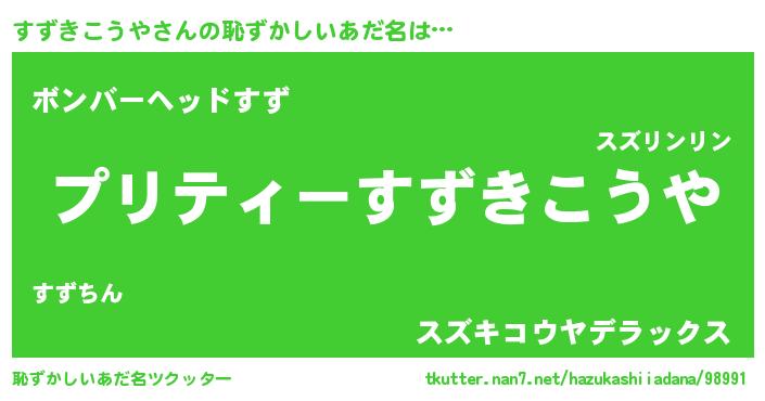 | ヒーロー風カッコイイあだ名 | 『スーパースズキコウヤ』『幻影騎士スズ』 |