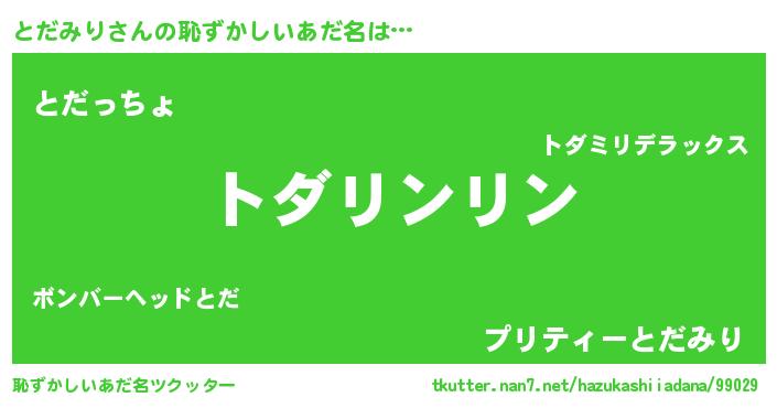 | ヘコむあだ名 | 『とだっ子』『なまこ酢』『とだにー』 |