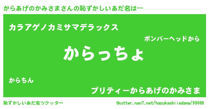 | 意味不明あだ名 | 『からあげのかみさまフォーエバー』 |