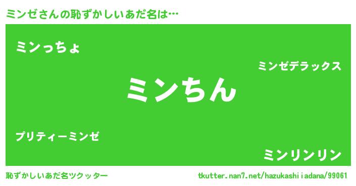 | 意味不明あだ名 | 『永久保存ミンゼ』『ミンゼフォーエバー』 |