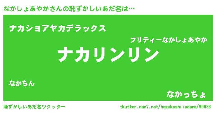 | 胡散臭い通販商品みたいなあだ名 | 『信頼と実績のサプリメント…その名も「なかしょあやか」』 |