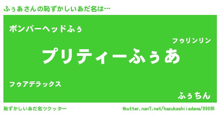 | ヒーロー風カッコイイあだ名 | 『スーパーフゥア』『正義の使者ふぅあ』 |