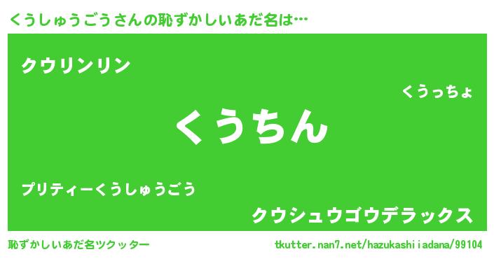 | ヘコむあだ名 | 『くうしゅうごう(笑)』『くうっ子』 |