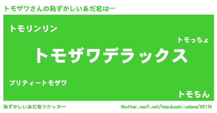 | 男性向けラノベタイトル風あだ名 | 『Re:トモザワから始める異世界生活』 |