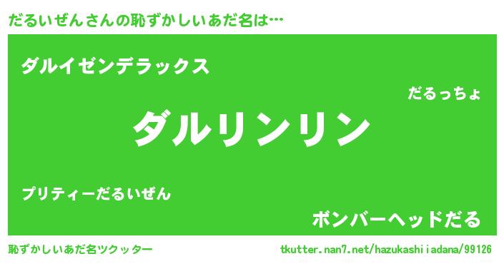 | 欧米人風あだ名 | 『ダレノガレだるいぜん』 |