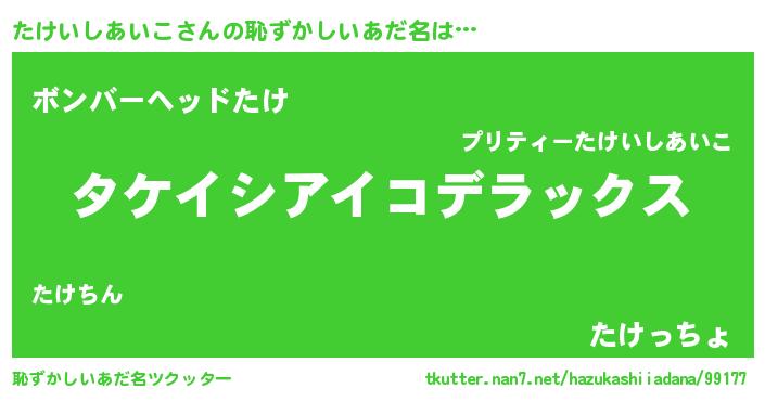 | 意味不明あだ名 | 『住所不定無職たけいしあいこ(4歳)』 |