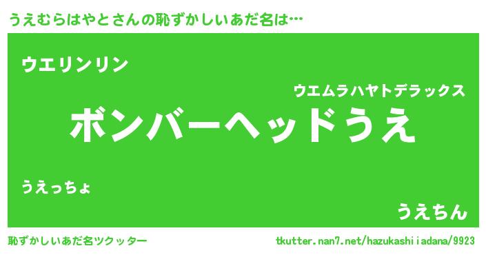 | ヘコむあだ名 | 『うえ太郎』『うえむらはやと(笑)』 |