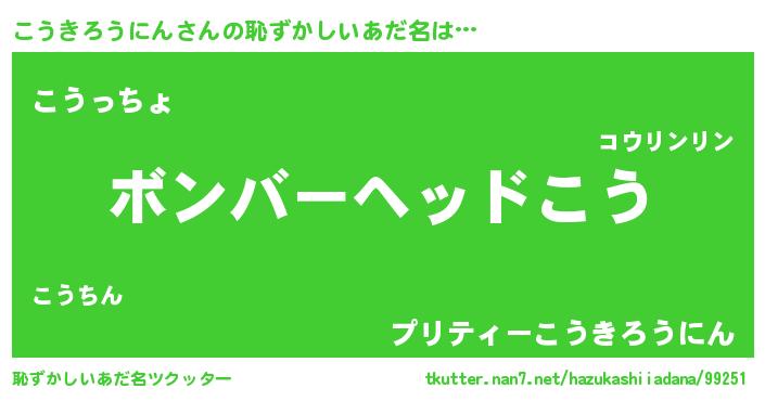 | ヒーロー風カッコイイあだ名 | 『正義の使者こうきろうにん』 |