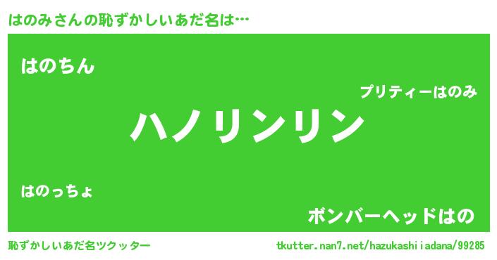 | ヘコむあだ名 | 『はのっぺ』『はのみ(苦笑)』『豆乳』 |