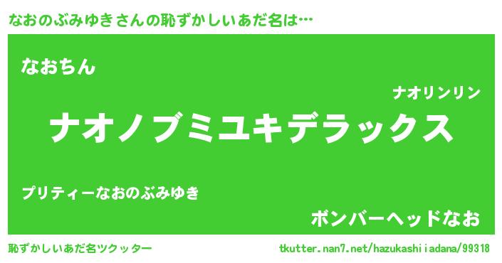 | ヘコむあだ名 | 『なおのぶみゆき(笑)』『なおっぺ』 |