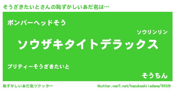| 意味不明あだ名 | 『自称そうざきたいと』 |