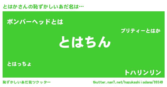 | ヘコむあだ名 | 『とはか(笑)』『とはっちょ』『豆乳』 |