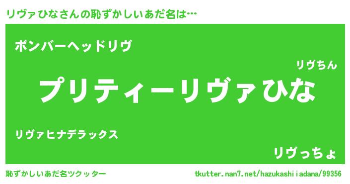 | 男性向けラノベタイトル風あだ名 | 『リヴァヒナスレイヤー』 |