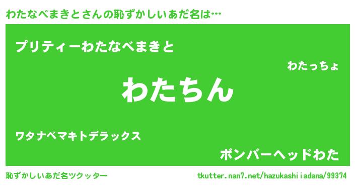 | ヘコむあだ名 | 『わたなべまきと(遠い目)』『わたにー』 |