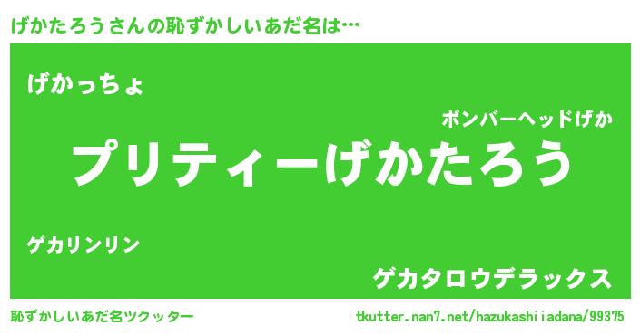 | ヒーロー風カッコイイあだ名 | 『スーパーゲカタロウ』『仮面ゲカダー』 |