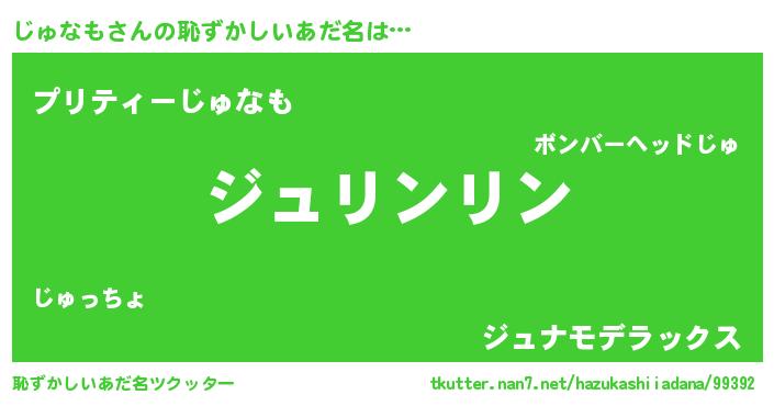 | 意味不明あだ名 | 『とにかく怪しいじゅなも』 |