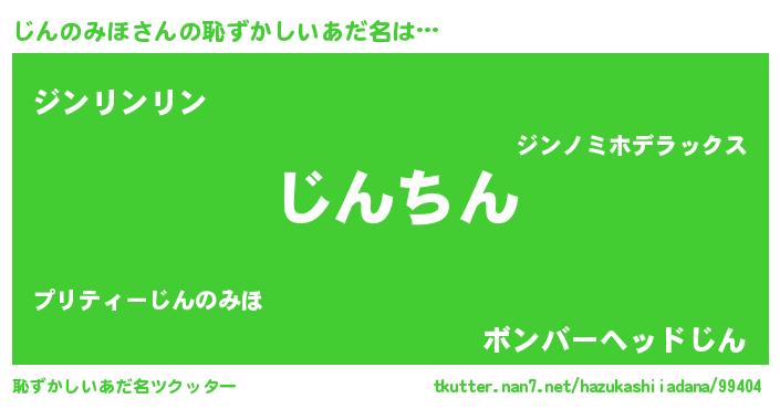 | 意味不明あだ名 | 『永久保存じんのみほ』『自称じんのみほ』 |