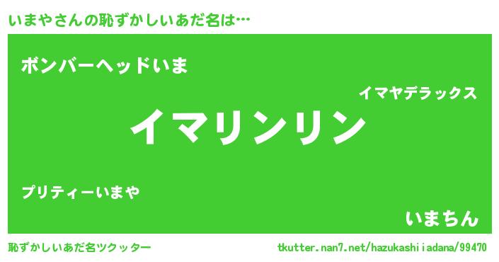 | ヒーロー風カッコイイあだ名 | 『仮面イマダー』『炎刃騎士イマ』 |