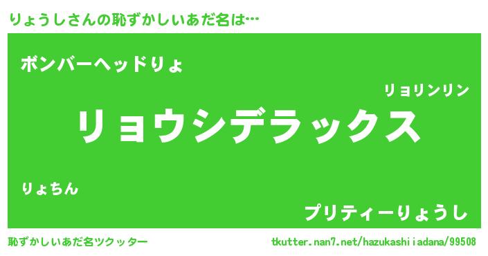 | 意味不明あだ名 | 『自称りょうし』『ペロリンりょうし』 |