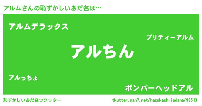 | ヘコむあだ名 | 『アルム(笑)』『アルふぇ~』 |