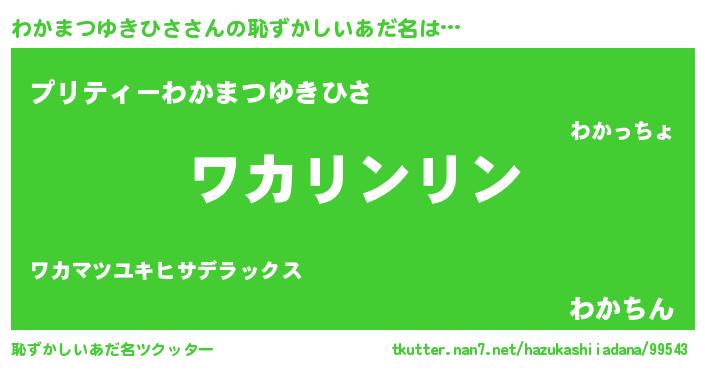 | 男性向けラノベタイトル風あだ名 | 『わかまつゆきひさの嫁は女の子じゃないと思った?』 |
