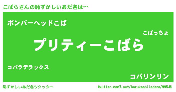 | ヒーロー風カッコイイあだ名 | 『スーパーコバラ』『慈愛の使者こばら』 |