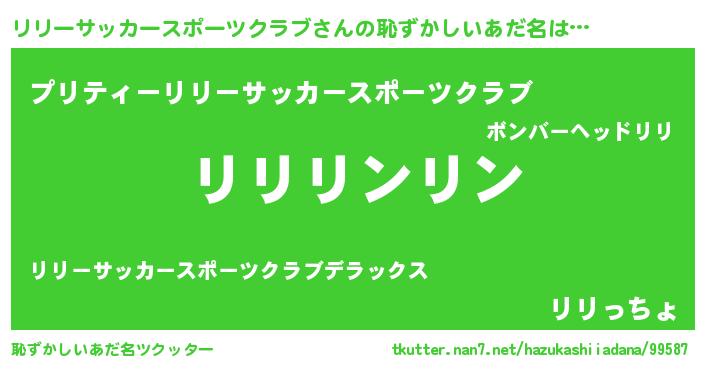 | 男性向けラノベタイトル風あだ名 | 『転生したらリリーサッカースポーツクラブだった件』 |