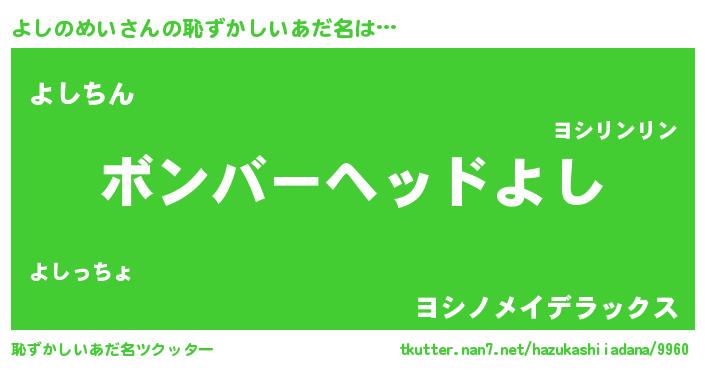 | ポケモン風あだ名 | 『ヨシゴンZ』『ヨックウザ』 |
