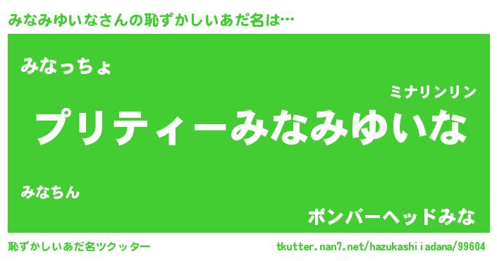 | 伝説のあだ名 | 『伝説のスナイパーみなみゆいな』 |