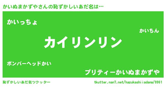 | 男性向けラノベタイトル風あだ名 | 『かいぬまかずやの嫁は女の子じゃないと思った?』 |