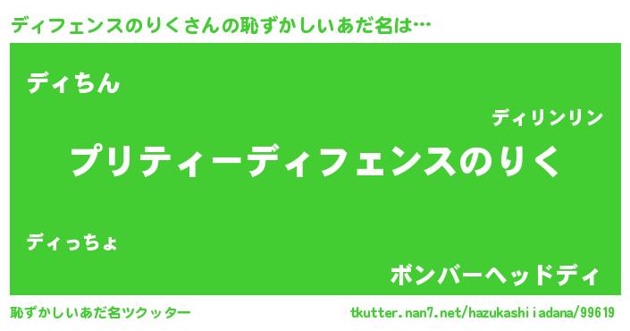 | 欧米人風あだ名 | 『ダレノガレディフェンスのりく』 |
