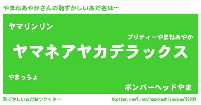 | 意味不明あだ名 | 『自称やまねあやか』 |