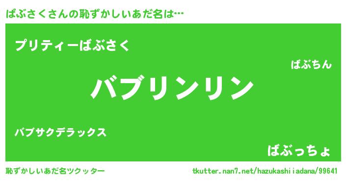 | 意味不明あだ名 | 『とにかく怪しいばぶさく』 |