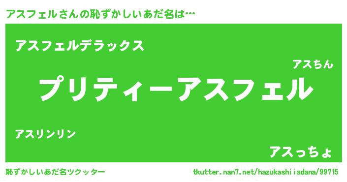 | 男性向けラノベタイトル風あだ名 | 『アスフェルの憂鬱』 |