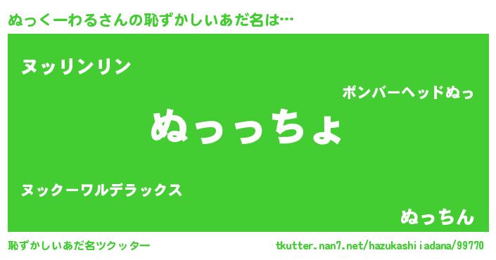 | 意味不明あだ名 | 『ぬっくーわるフォーエバー』 |