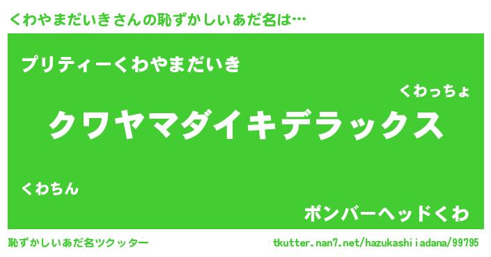| 意味不明あだ名 | 『自称くわやまだいき』 |