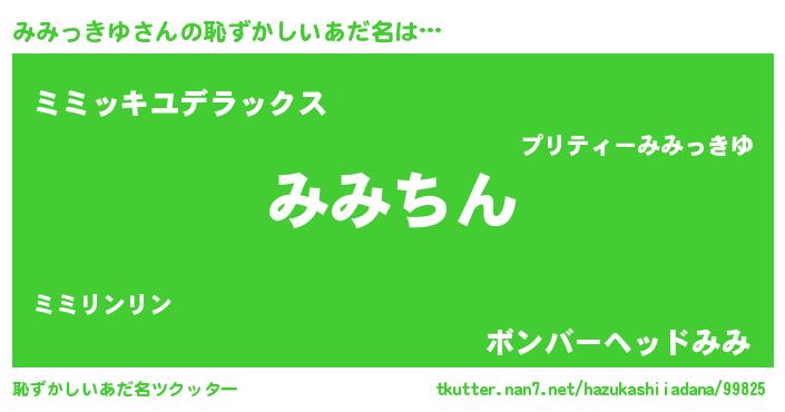 | 意味不明あだ名 | 『永久保存みみっきゆ』『自称みみっきゆ』 |