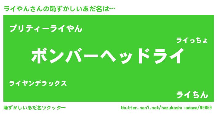 | ヘコむあだ名 | 『ライふぇ~』『ライやん(笑)』 |